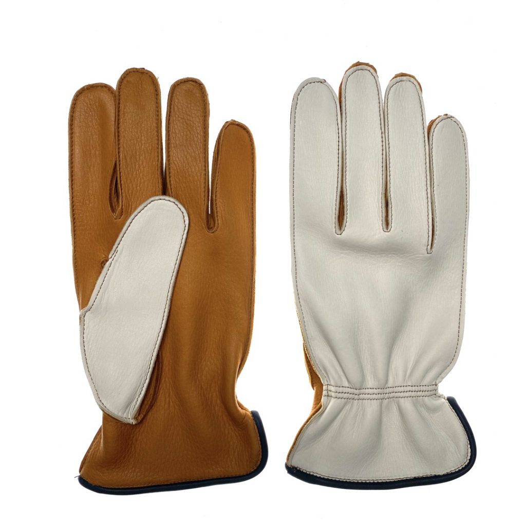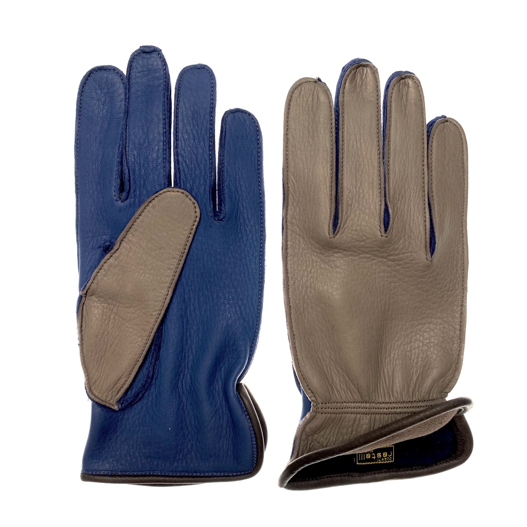 Art. PaulGuanti bicolore da motorino e da città da uomo. Elegante, pratico. Perfetto per chi ama la vita attiva e ama essere elegante in sella allo scooter così come a terra grazie a un unico paio di guanti. Materiale principale: 100% cervo sfoderato. Gli abbinamenti nei colori Panna/Cuoio con orlatura blu e Fango/Jeans con orlatura marrone fanno di questi guanti un vero e proprio must per l’autunno. Il nostro amore per i dettagli non finisce qui: ecco perché abbiamo realizzato anche le orlature interamente in cervo.