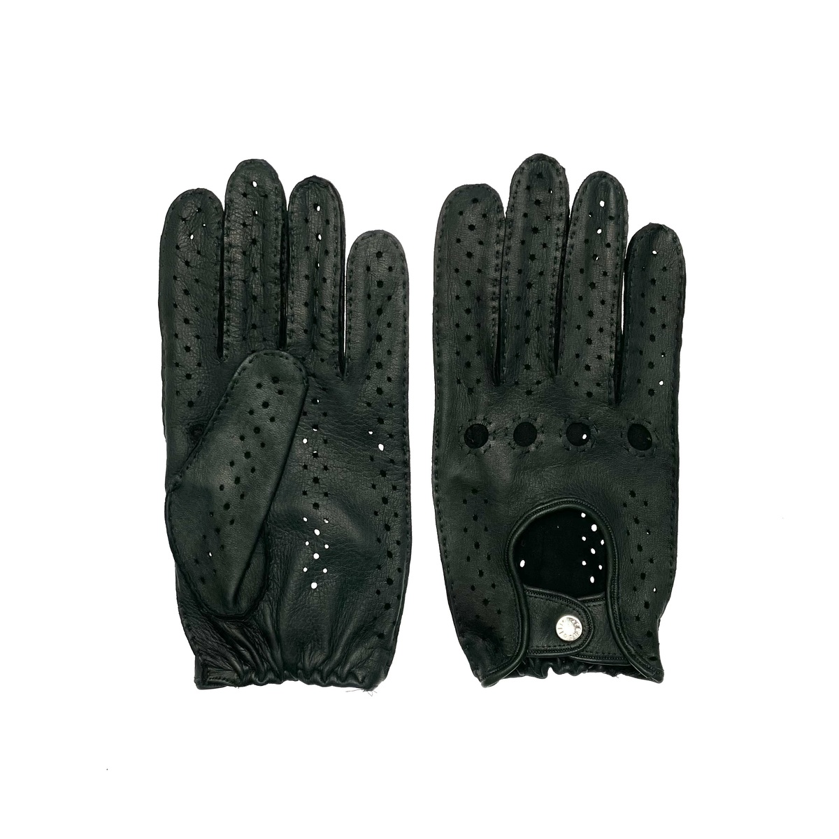 Art. 173ccGuanto da guida a dita corte. Interamente realizzato in cervo, garanzia di morbidezza, comodità e durata. Il cinturino all’altezza del polso presenta una chiusura con bottone automatico logato che rende la calzata avvolgente e comoda. L’elastico al polso rende il fitting perfetto in ogni momento. Lunghezza del polso: 1 pollice. Cuciture a mano. Dorso: rifinitura dell’ovale e cinturino in nappa. Interamente sfoderato. 100% Made in Italy.