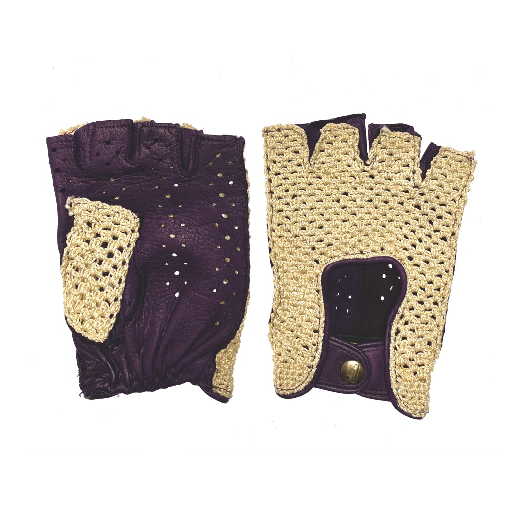 Art. 29ccGuanto da guida a dita corte.Sopramano con lavorazione a crochet (uncinetto fatto a mano). Sottomano realizzato in cervo, garanzia di morbidezza, comodità e durata. Il cinturino all’altezza del polso presenta una chiusura con bottone automatico logato che rende la calzata avvolgente e comoda. L’elastico al polso rende il fitting perfetto in ogni momento. Cuciture a macchina. Lunghezza del polso: 1 pollice. Dorso: rifinitura dell’ovale e cinturino in nappa. Interamente sfoderato.100% Made in Italy.